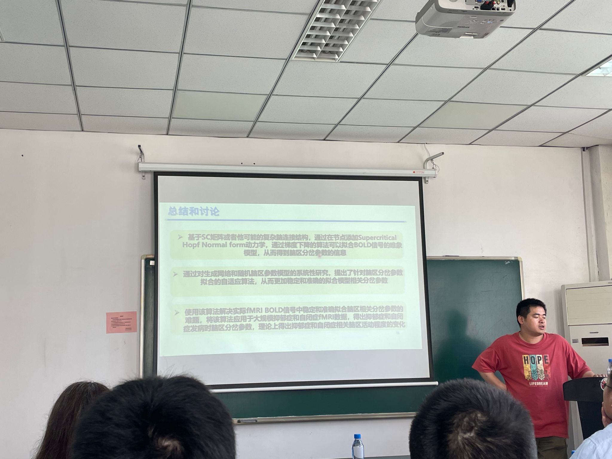 蒋研究员报告题目为通用自适应全脑动力学预测方法:在精神障碍中的应用。他介绍了脑区分岔参数拟合研究,研究过程中发现过拟合的问题并通过生成网络数据启发改进算法框架,从而得到更加稳定和准确的拟合参数。