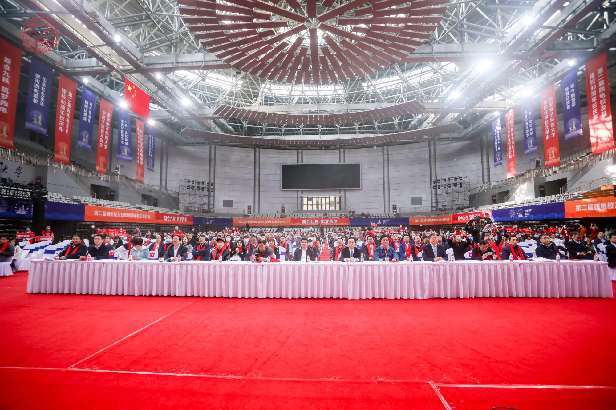 大会在热情洋溢的表演《再回西电》中拉开帷幕,全球各校友会会长、秘书长及校友代表,学校各部门、各学院负责人,教师代表,学生代表以及社会各界人士代表近600人相聚远望谷,共话母校情,同启校庆年。