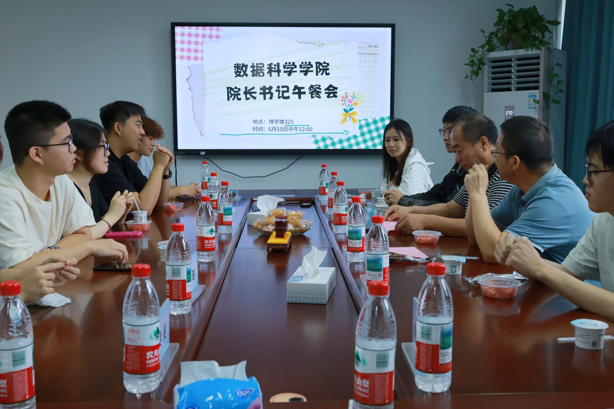 为深入贯彻中央八项规定精神,切实践行密切联系群众的优良作风,万象城娱乐awc线路积极搭建师生交流桥梁,6月10日中午,万象城娱乐awc线路以“‘食’光暖意 共话成长”为主题,举办了一场别开生面的院长书记午餐会。学院院长宁自军、党委书记黄金珠、学工办辅导员及10余位学生代表围坐一堂,在轻松氛围中对话交流。