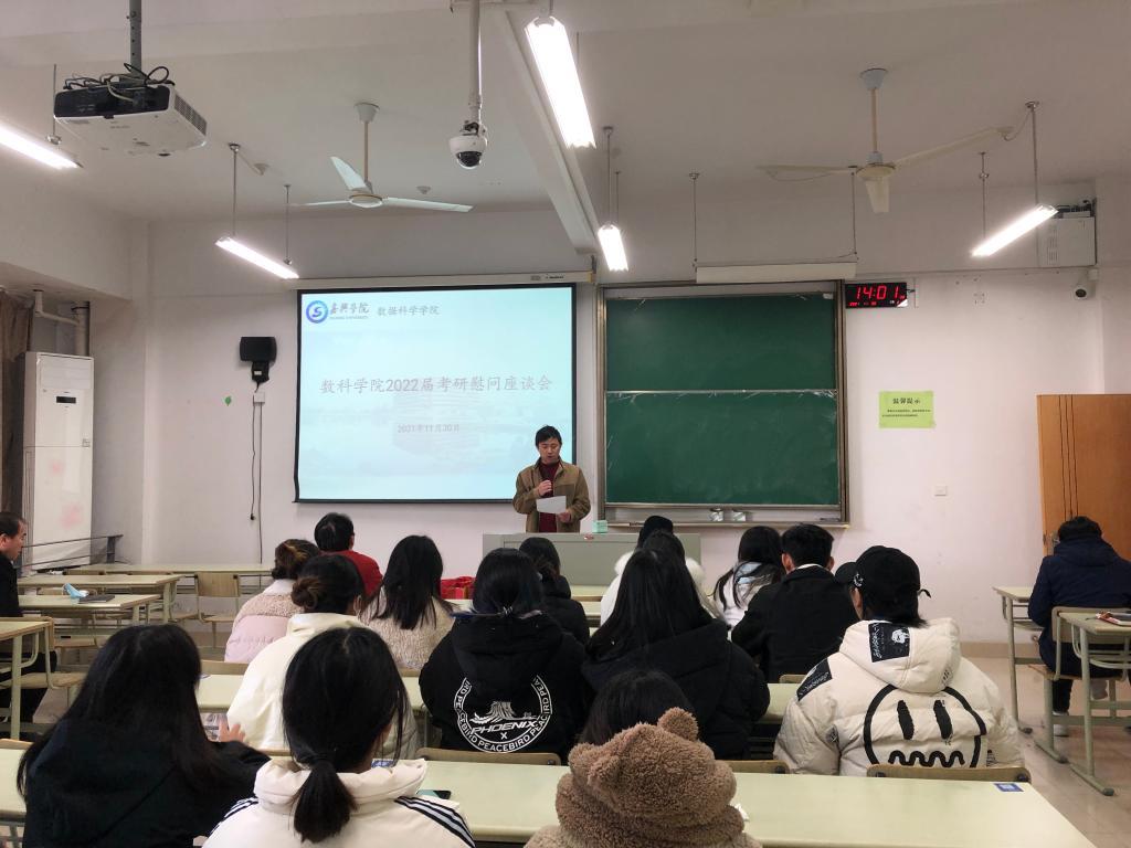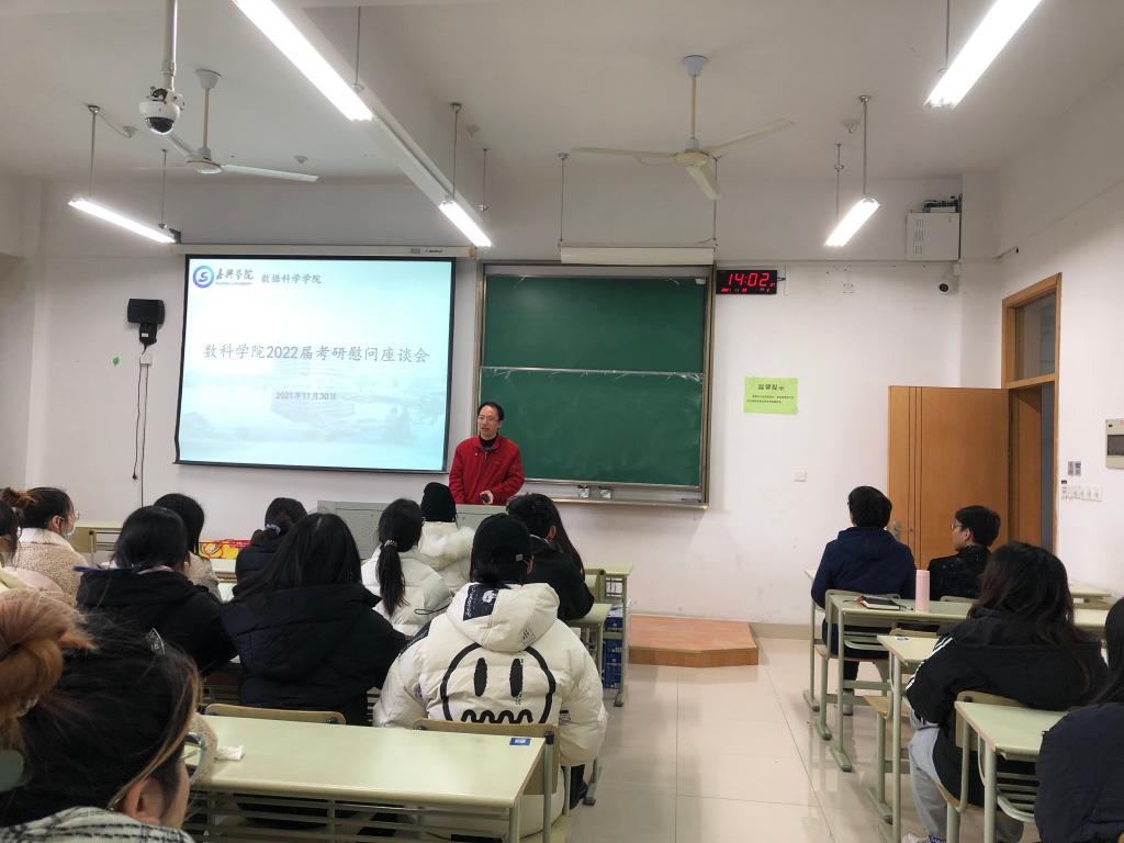 为增强学生备考信心11月30日下午,数科学院在博学楼206教室召开考研学生慰问座谈会,为考研学生添动力、送祝福。会议由学院党委副书记李寒星主持,学院院长张景军、副院长宁自军参加。