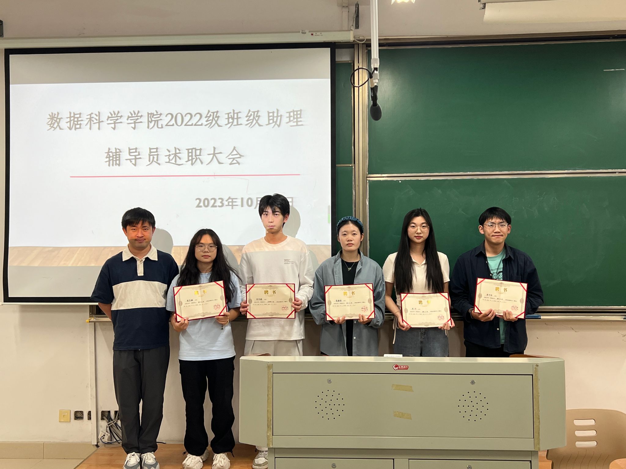 会议伊始,李寒星为全体2022级班级助理辅导员颁发了聘书。随后,各位班级助理辅导员对自近一年的工作情况依次进行了详细的汇报,他们从新生报到、入学前教育、军训、组建班委以及日常答疑、课外活动等方面展示了班级管理工作的成果;同时每位助理辅导员都结合自己所带班级情况和自身工作经历,分享了在担任助理辅导员期间的感想和收获,为下一届助理辅导员的工作提供了指导和帮助。
