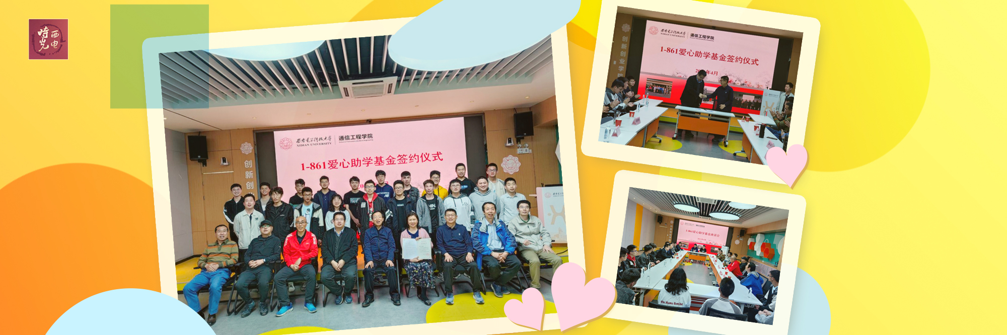 “1861助学金”:为感恩母校,回馈社会,自2006年起,通信工程学院1-861班爱心校友自发组织设立了“1-861爱心助学金”。设立助学金目的是为保证家庭经济困难的学生能够专注于学习,帮助其顺利完成学业,促进他们健康成长成才。“1-861爱心助学金”已经持续开展了16年,累计资助百余名通院学子。同时,从2015年春季学期开始,1-861班的校友们又在助学金的基础上设立了“1-861爱心奖学金”,对获助学生中取得较好成绩者给予奖励,鼓励同学们更加专注于学习,学长们还通过QQ交流群及返校举行交流会的形式与同学们进行交流,解答同学们在学习及中遇到的疑惑。