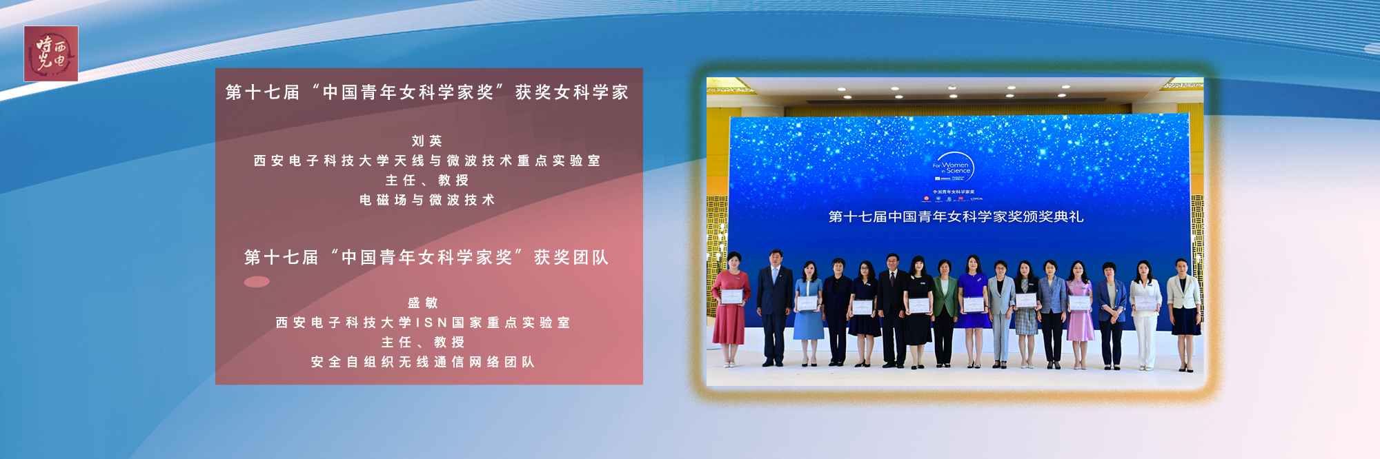 7月15日,第十七届中国青年女科学家奖颁奖典礼在北京举办。WilliamHill官方网站教授刘英、西北核技术研究所研究员肖仁珍获中国青年女科学家奖;WilliamHill官方网站教授盛敏牵头的安全自组织无线通信网络团队获中国青年女科学家奖团队奖。