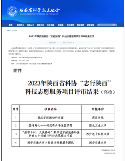 【学在西电】“数字乡村、大美秦岭”入选2023年陕西省科协“志行陕西”科技志愿服务项目