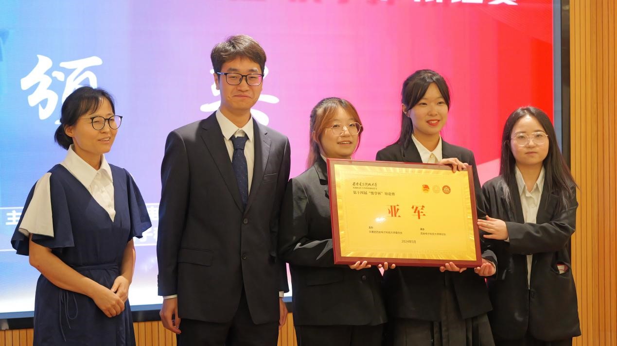最终,正反比分为5:4,正方通信工程学院辩论队荣获冠军,反方经济与管理学院经纶辩论队获得亚军。反方三辩徐胜倩同学获得决赛最佳辩手。