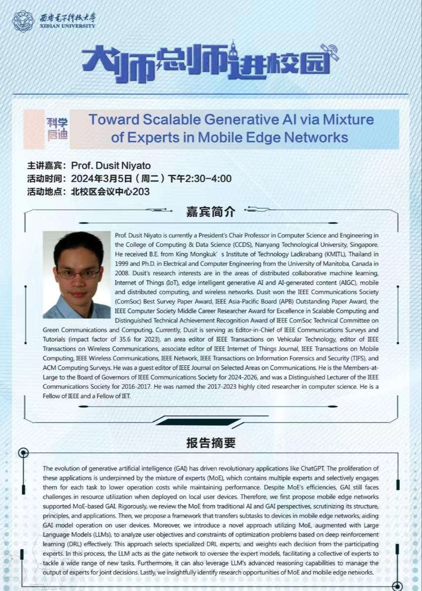 报告人:Dusit Niyato 教授