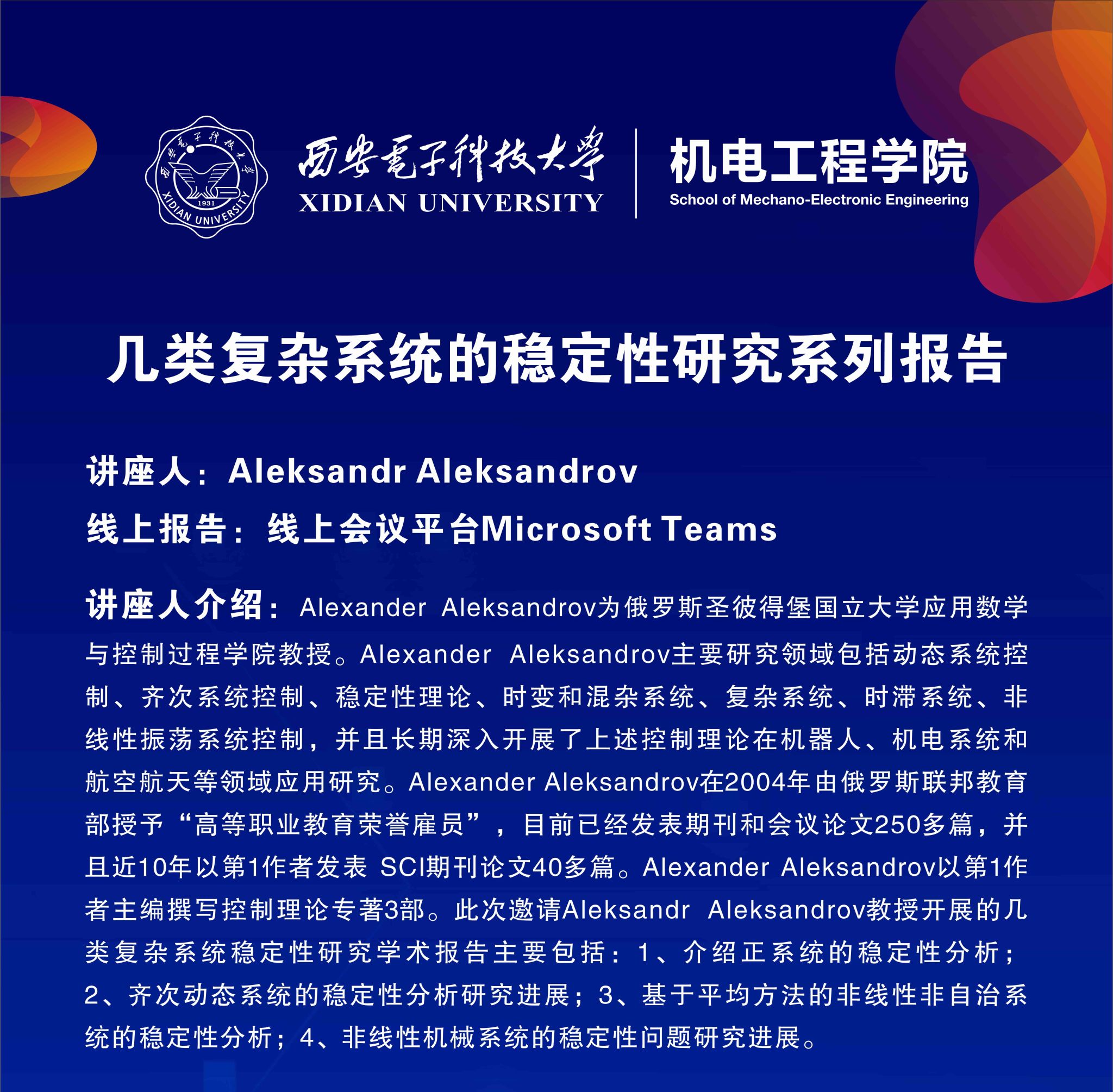报告人:Aleksandr Aleksandrov 教授